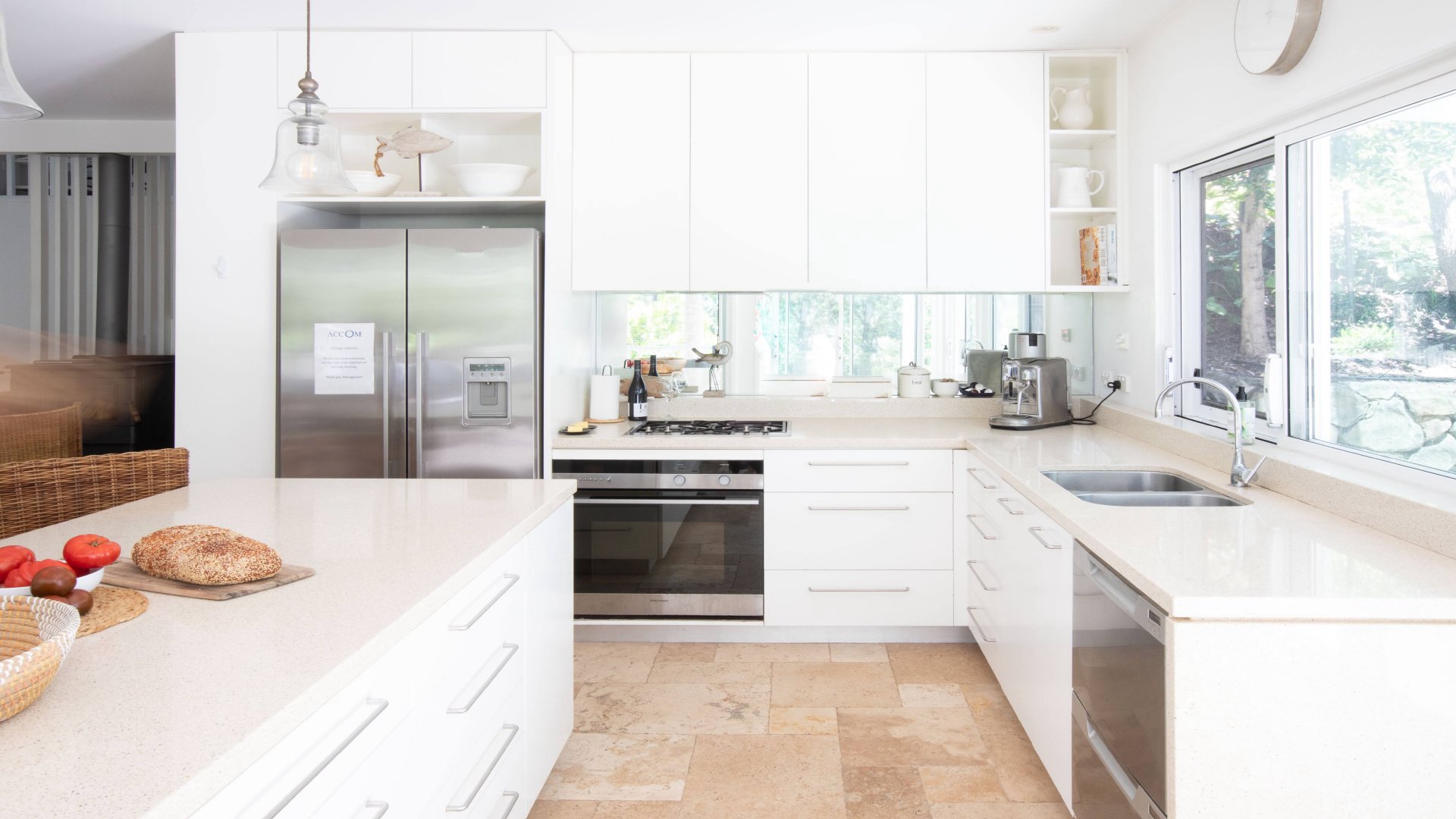 - Ultra modern CaesarStone kitchen with stainless steel appliances, breakfast bar and Nespresso machine.