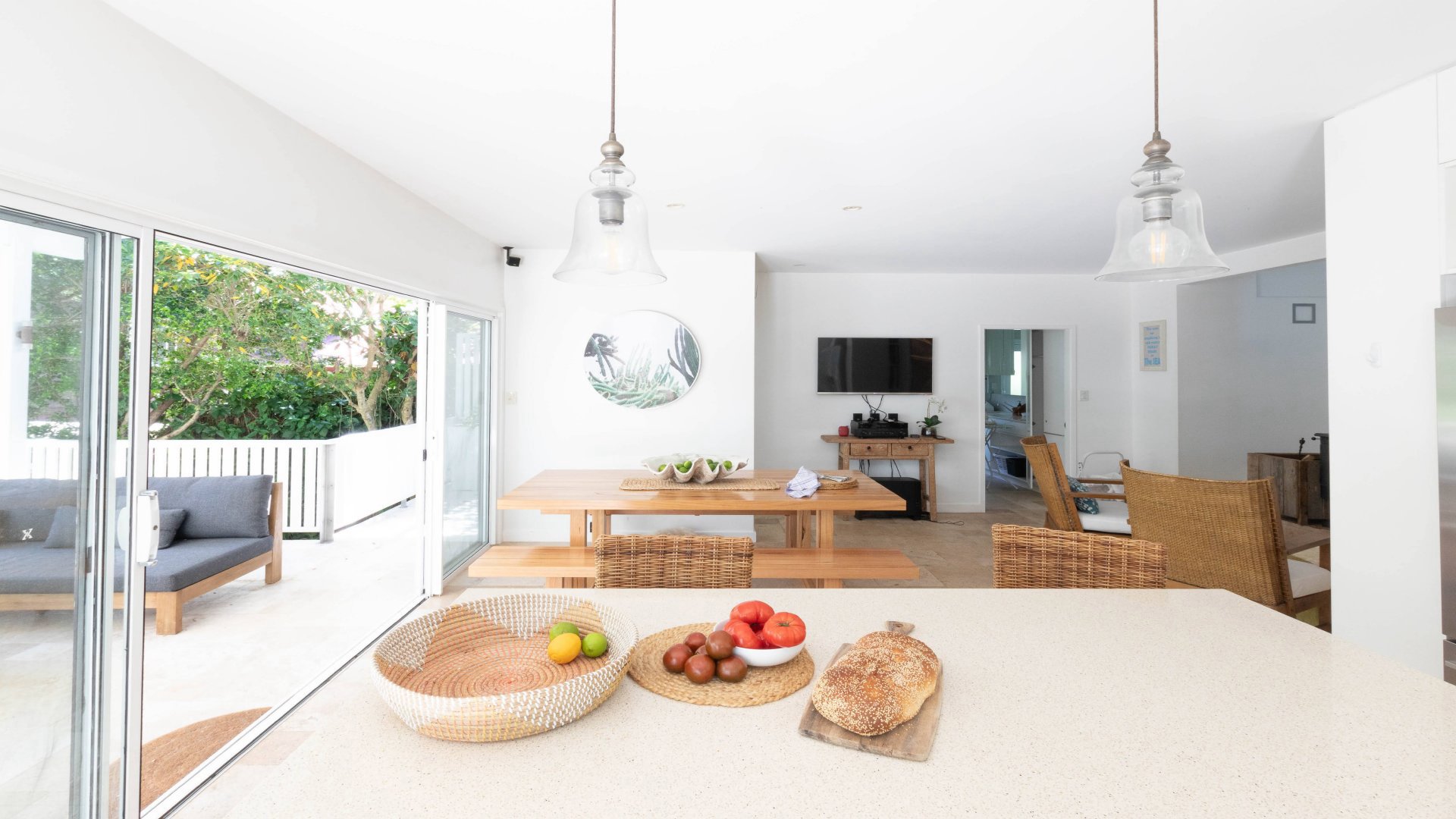 - Spacious main living/dining with TV and sound system, opens up to outdoor entertaining area