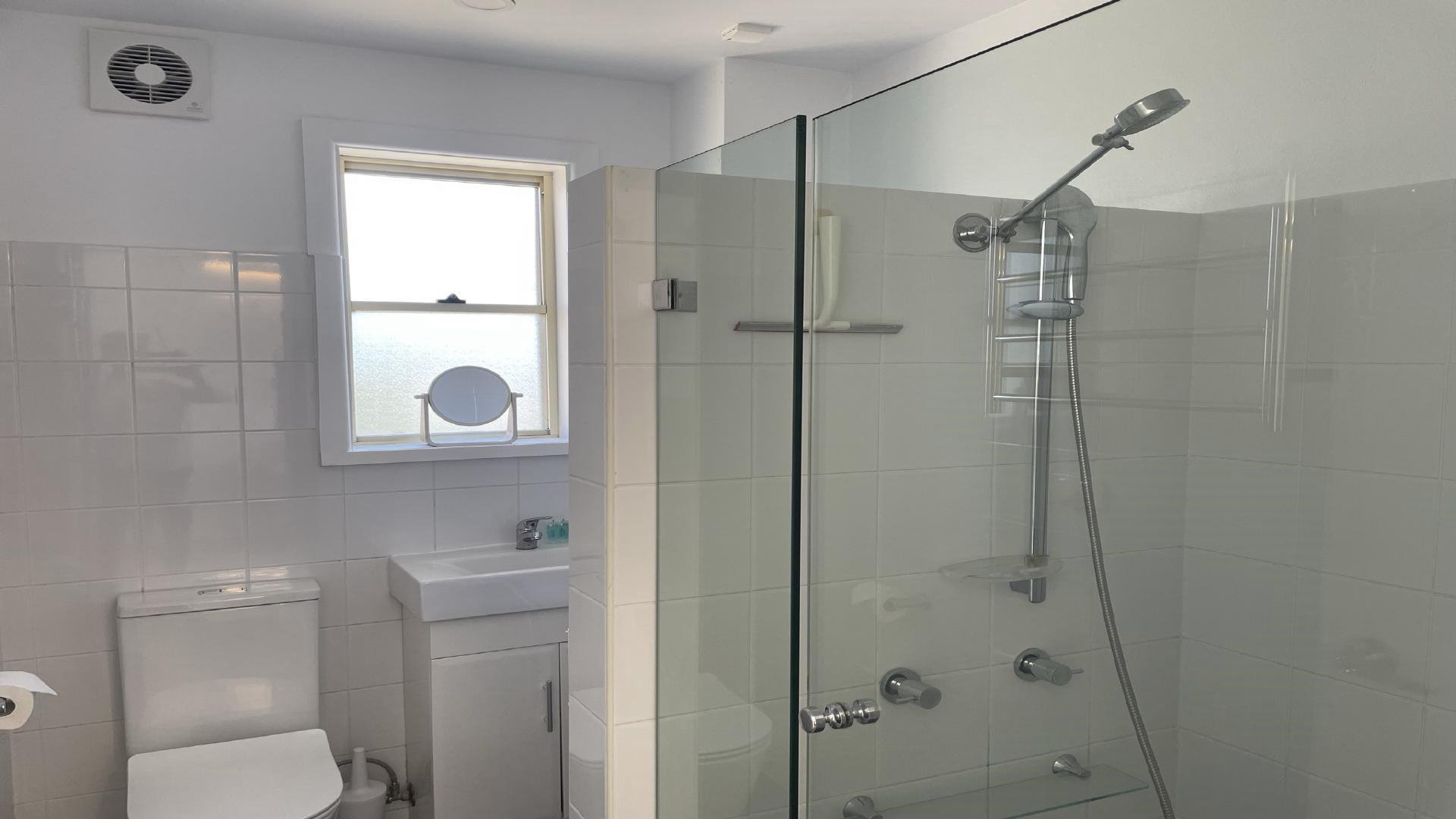 - Bathroom features shower and toilet; washing machine