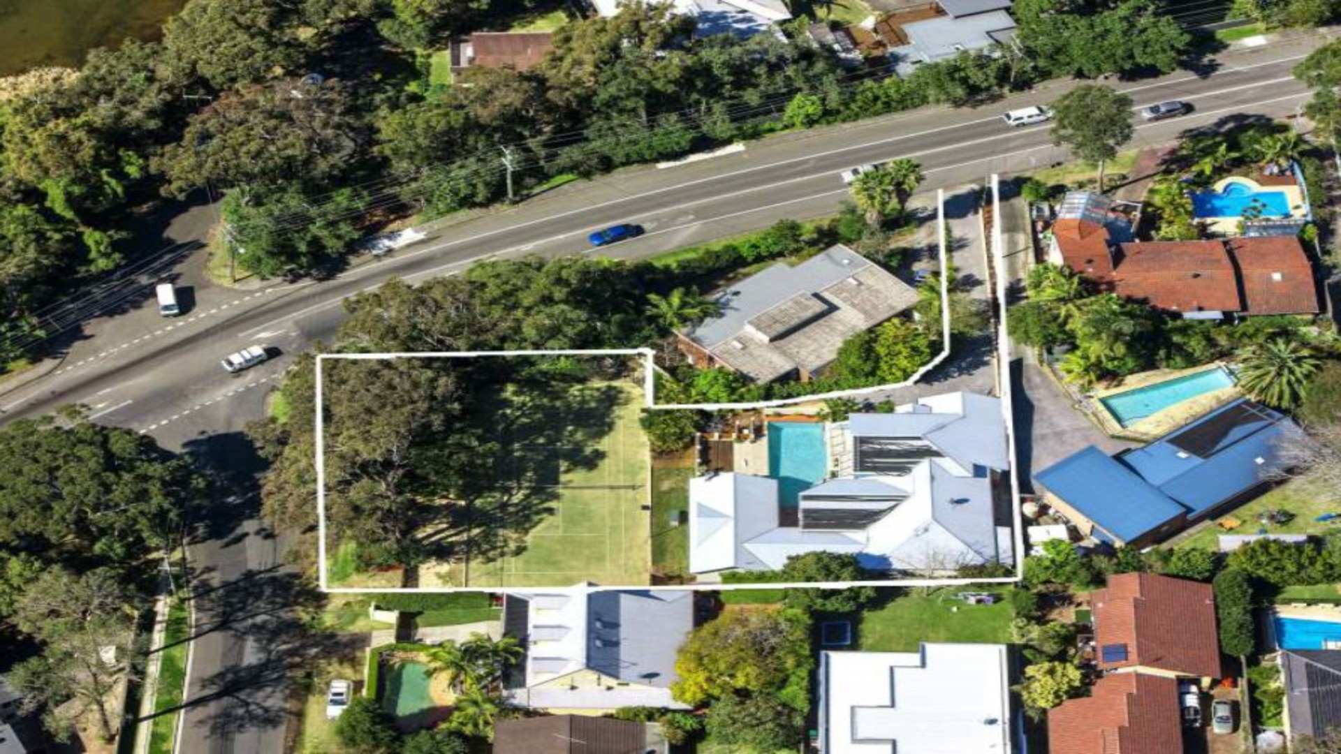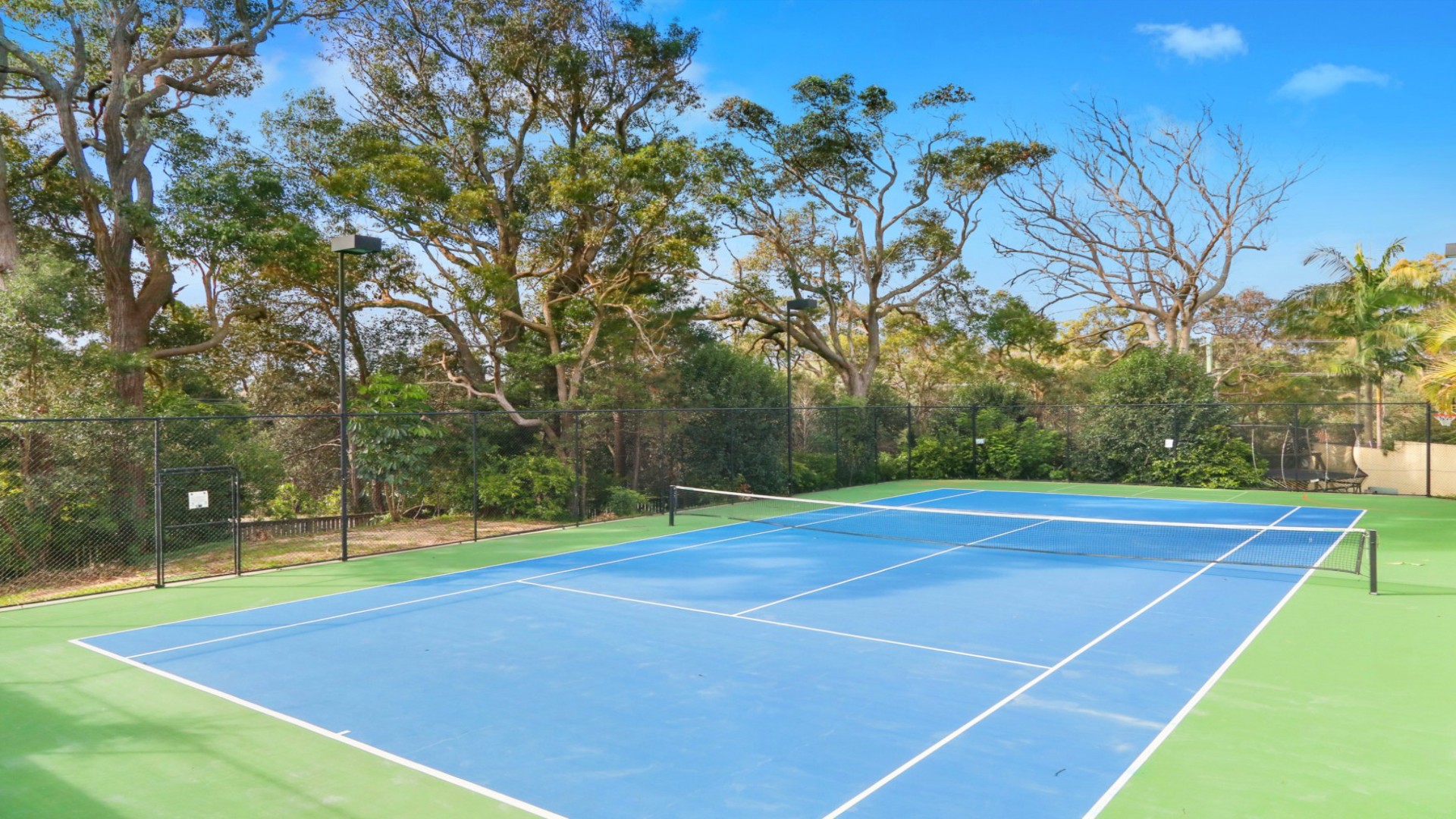 - Full size tennis court, double lock-up garage