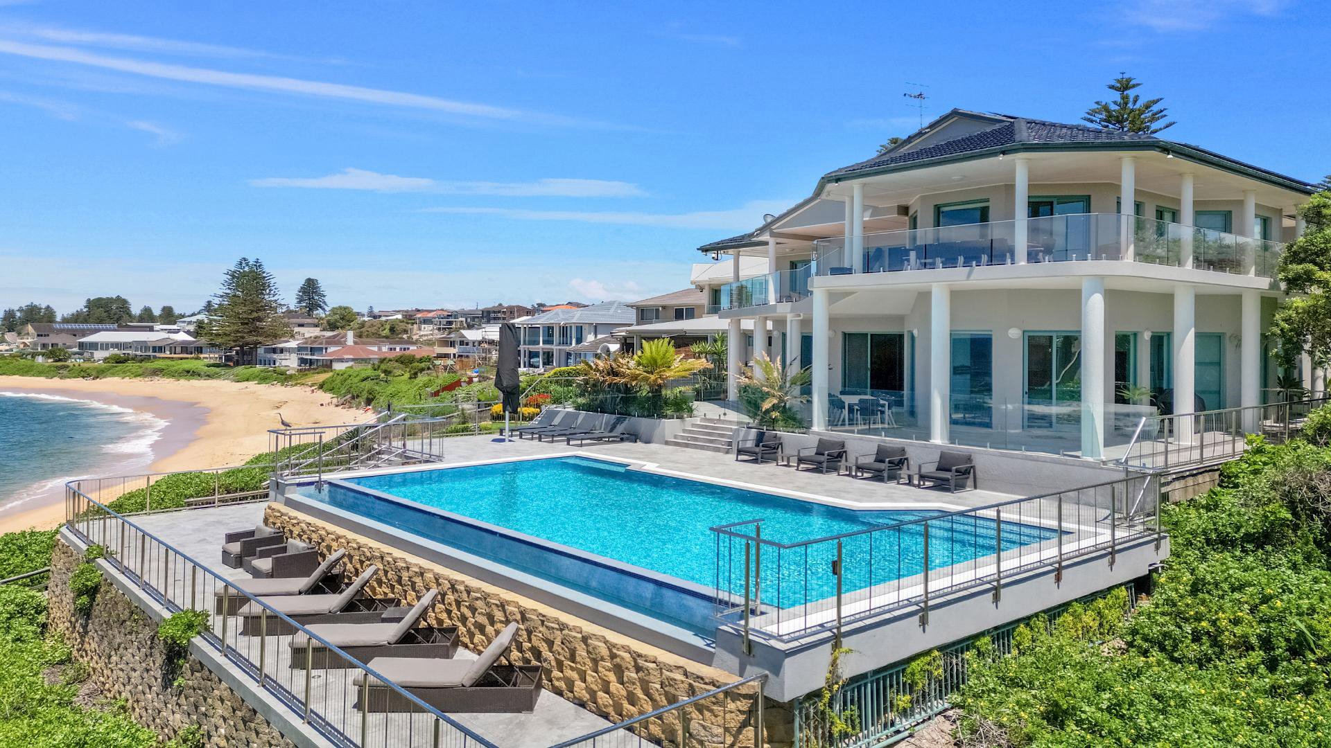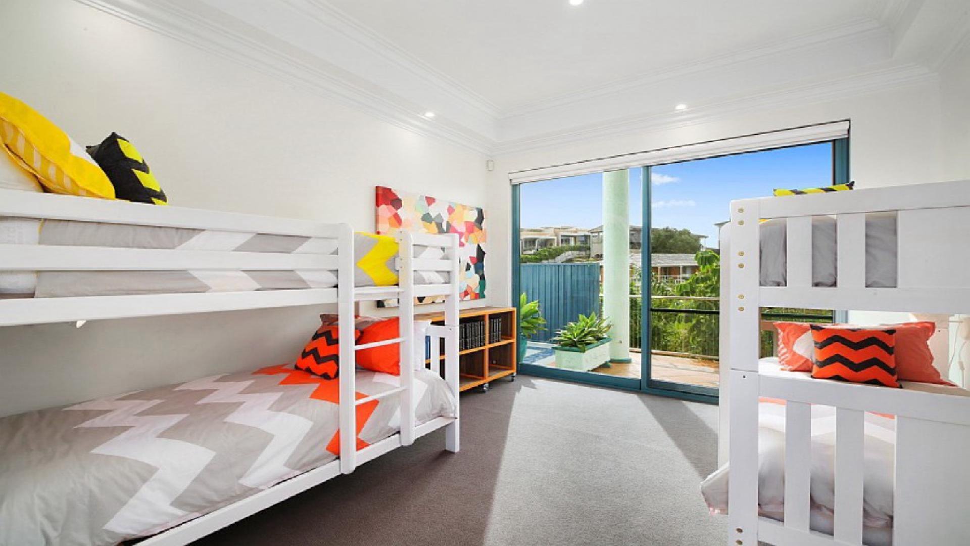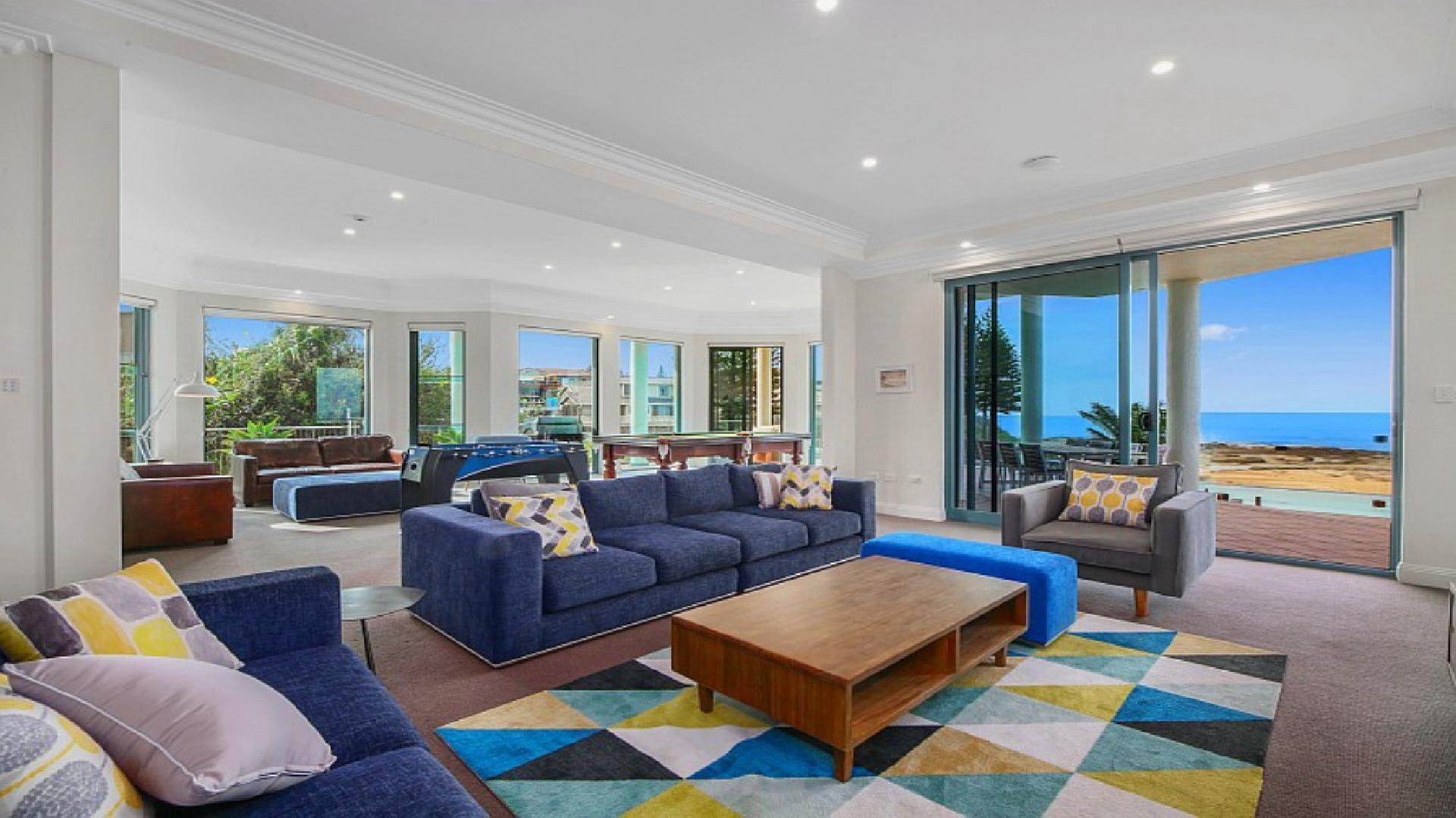 Waves at Blue Bay is the ultimate family getaway. Generous in its proportions, this impeccably styled absolute beachfront is perfectly positioned to enjoy the 180-degree ocean views. Split over two levels Waves at Blue Bay is complemented by a large entertaining deck with BBQ area, private infinity-edge pool overlooking the ocean, and direct access to beautiful Blue Bay beach. Thoughtfully designed, this home features two beautifully appointed kitchens and living spaces on both levels, games room with pool table and foosball, ducted airconditioning upstairs and secure entry. Laze by the pool on a sun lounge, or take in the view from the sitting areas. Waves at Blue Bay is the perfect property to completely relax. Master bedroom contains a king bed, walk-in robe and en suite with corner bath. Bedroom 2 contains a king split, bedroom 3 contains a king and kids single. Bedroom 4 contains a king split, while bedroom 5 contains a king bed and ocean views. Bedroom 6 contains two bunk beds. All bedrooms except bedroom 6 feature ceiling fans and built-ins.