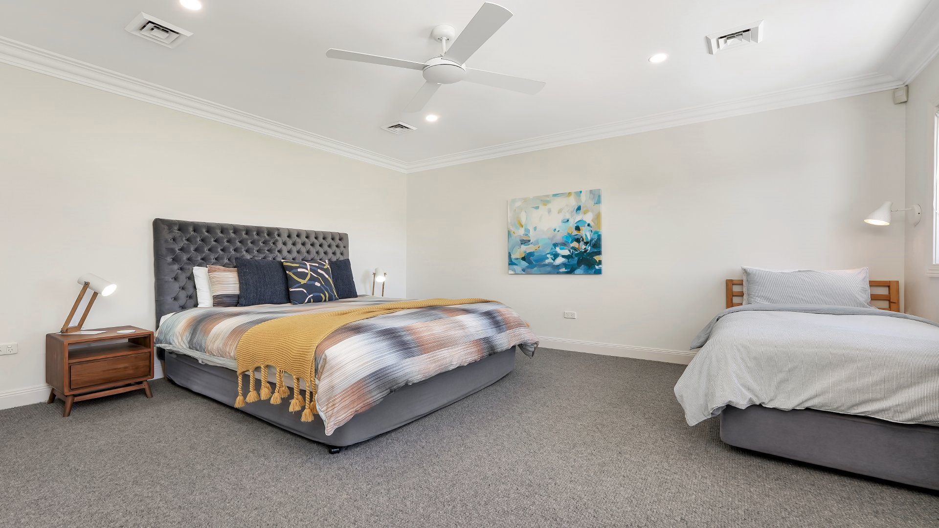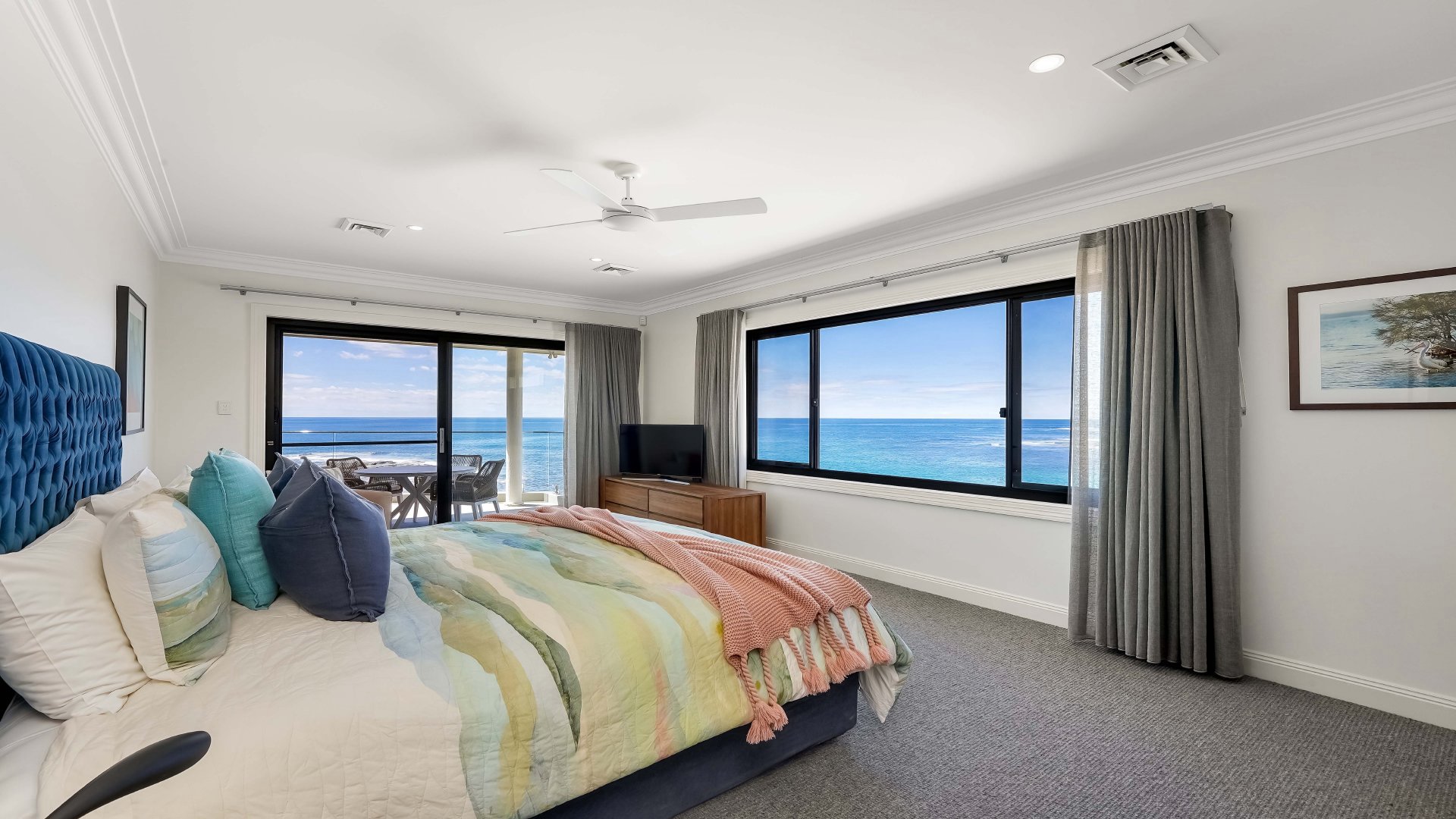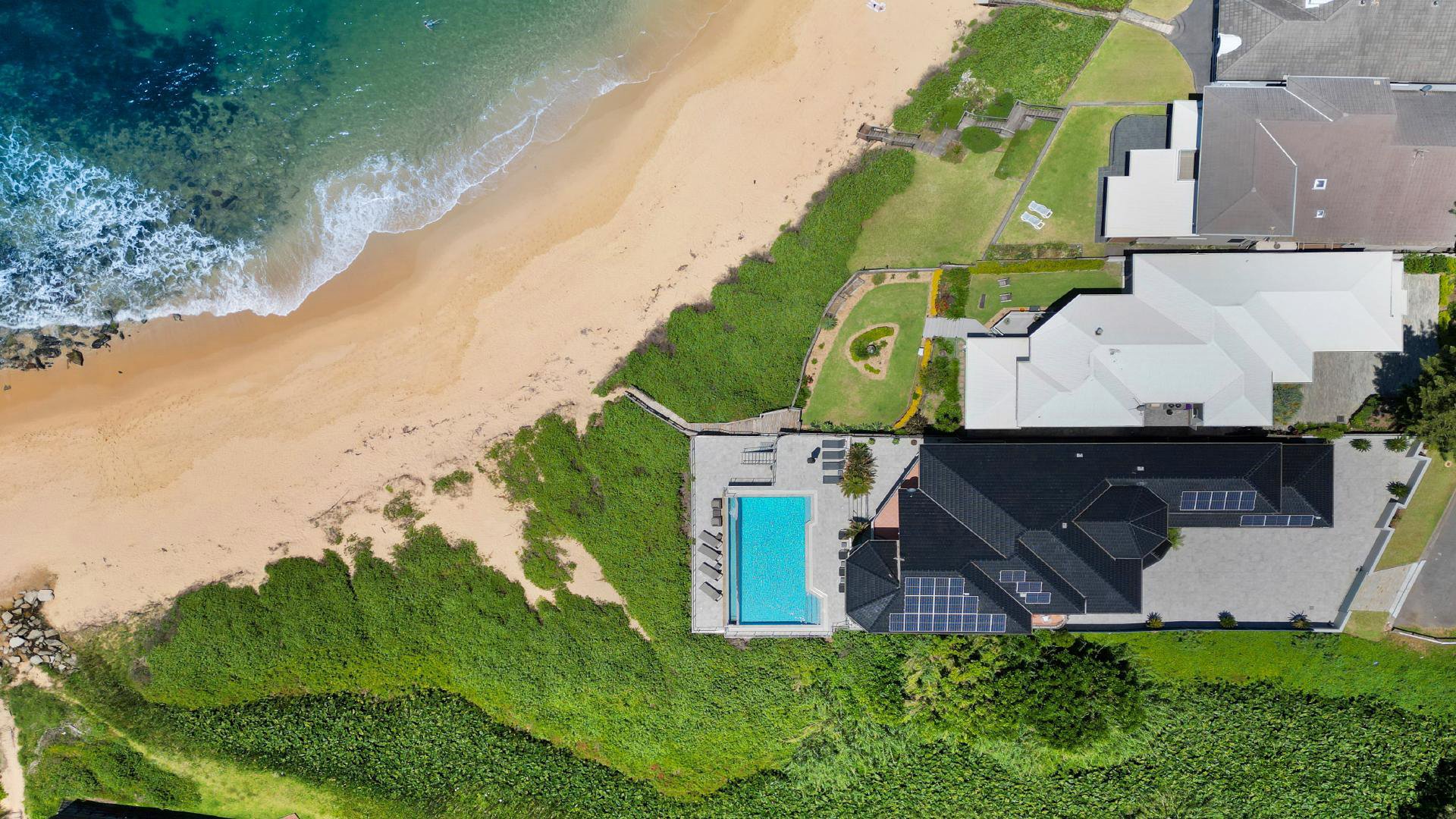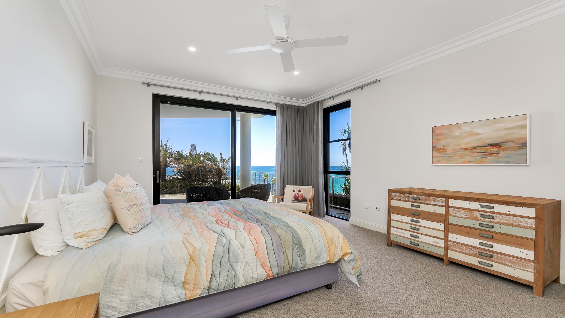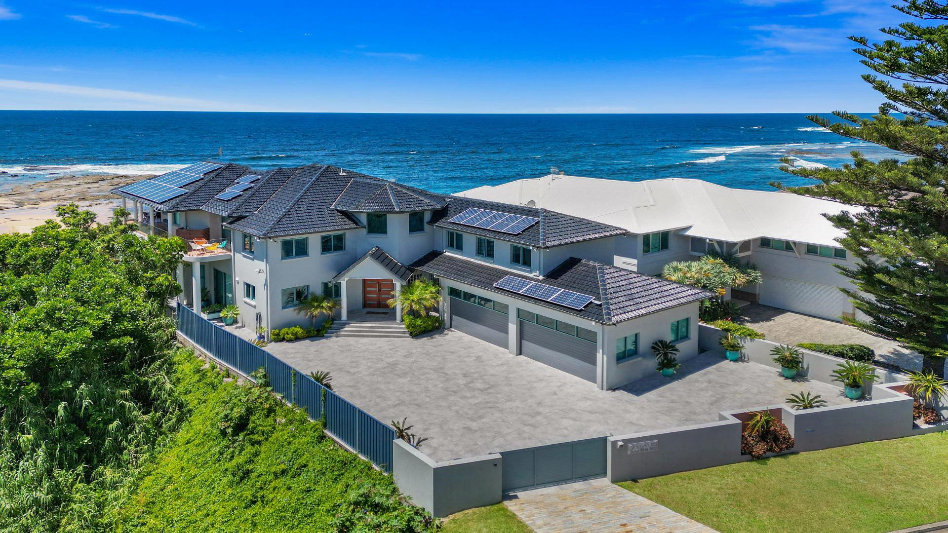 - Absolute beachfront; secure entry; ducted air-conditioning; ceiling fans; four car garage