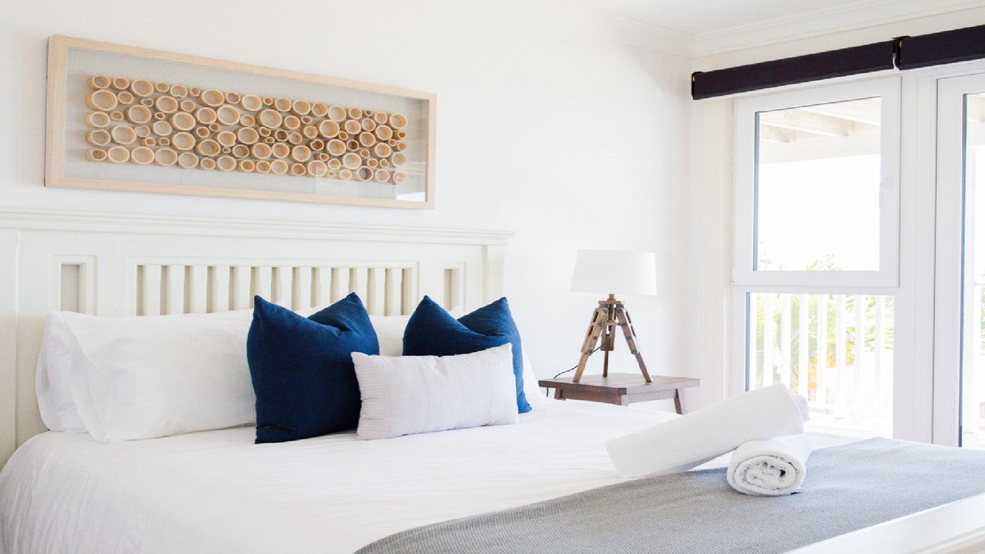 Bedroom 1 features a king bed, ensuite bathroom and ocean views. Bedroom 2 features a queen bed and ensuite.