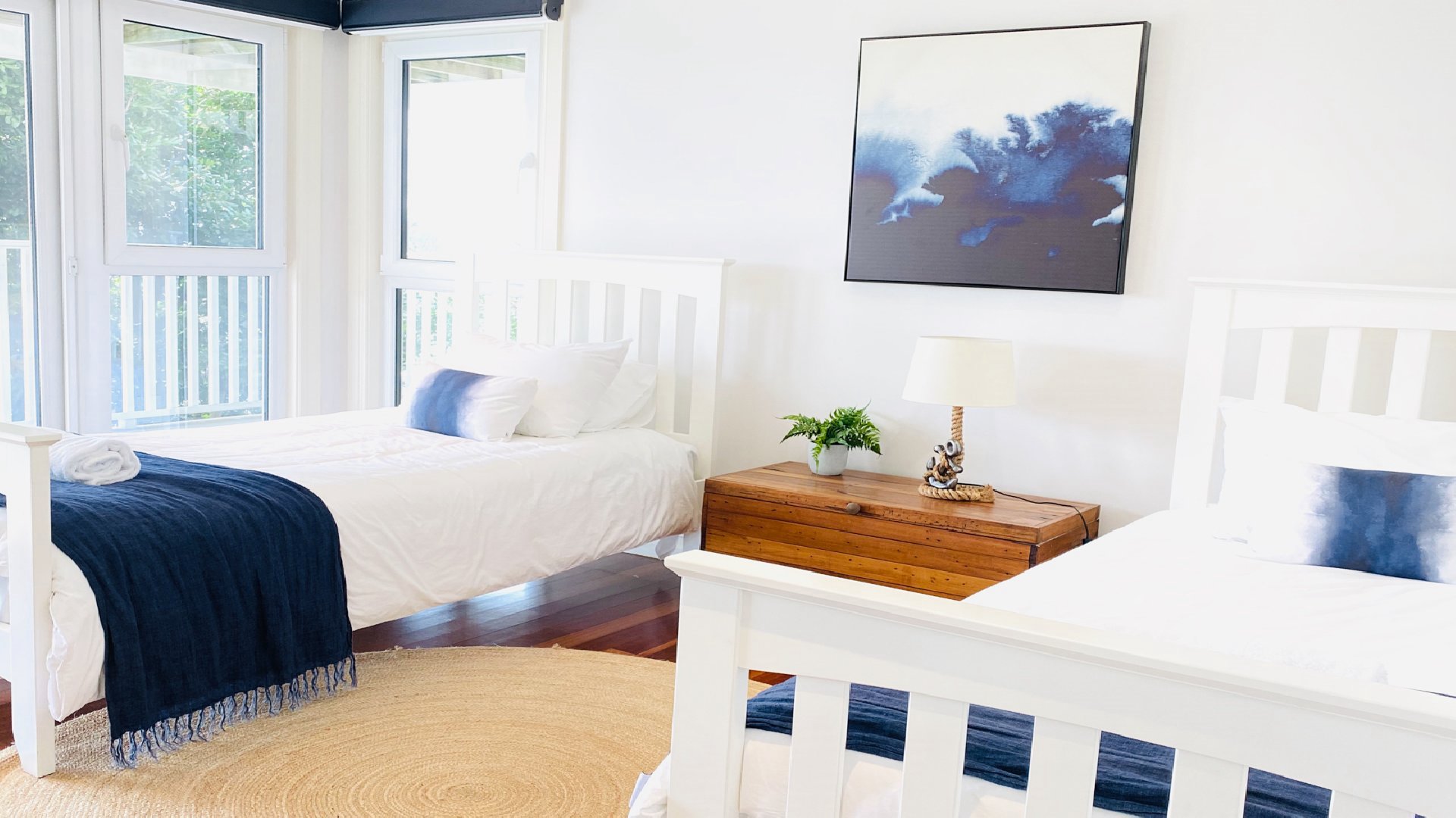 Bedroom 3 features 2 king singles.