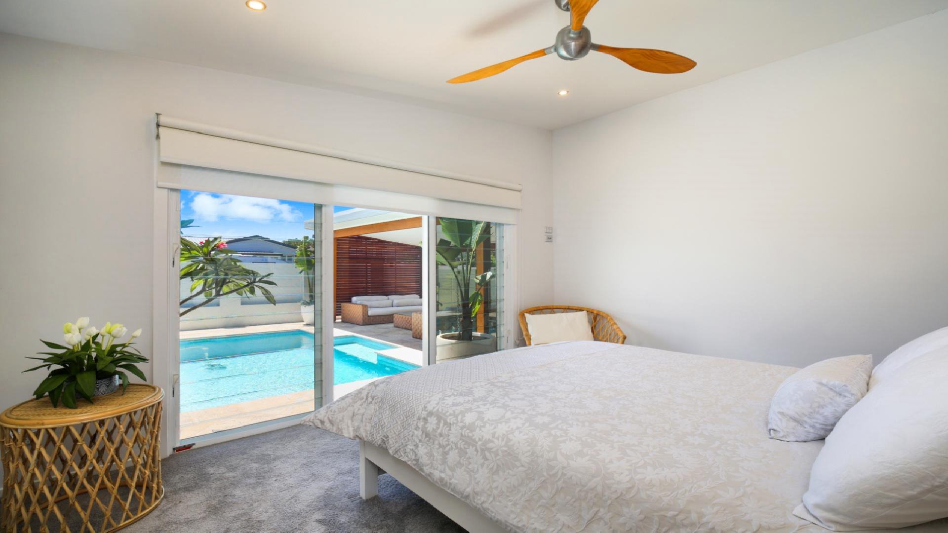 With only a 5-minute walk to Wamberal Beach and cafe strip or a short drive or 15 minute walk to Terrigal, Arila places you in the heart of the central coasts best beachside boutique shopping and culinary experiences on offer. The luxurious master bedroom offers Queen bed, walk in robe, en-suite bathroom with shower, pool views and ceiling fan. Bedrooms 2 & 3 both offer queen beds, built ins and ceiling fans. Main bathroom features both a shower and bath.