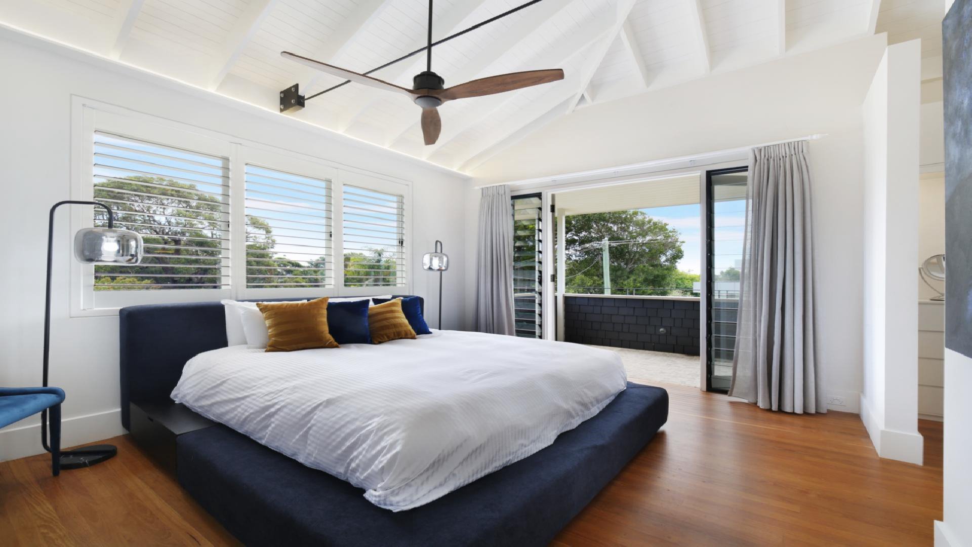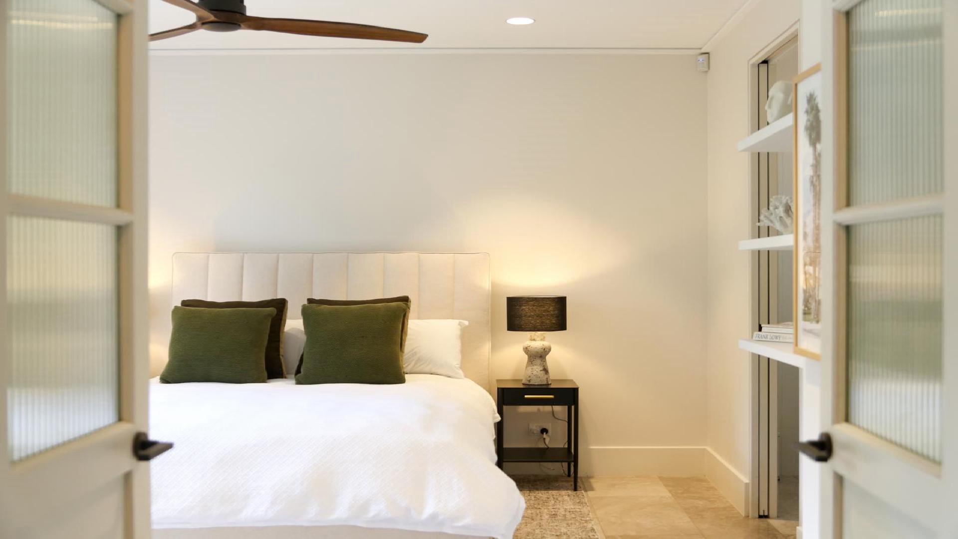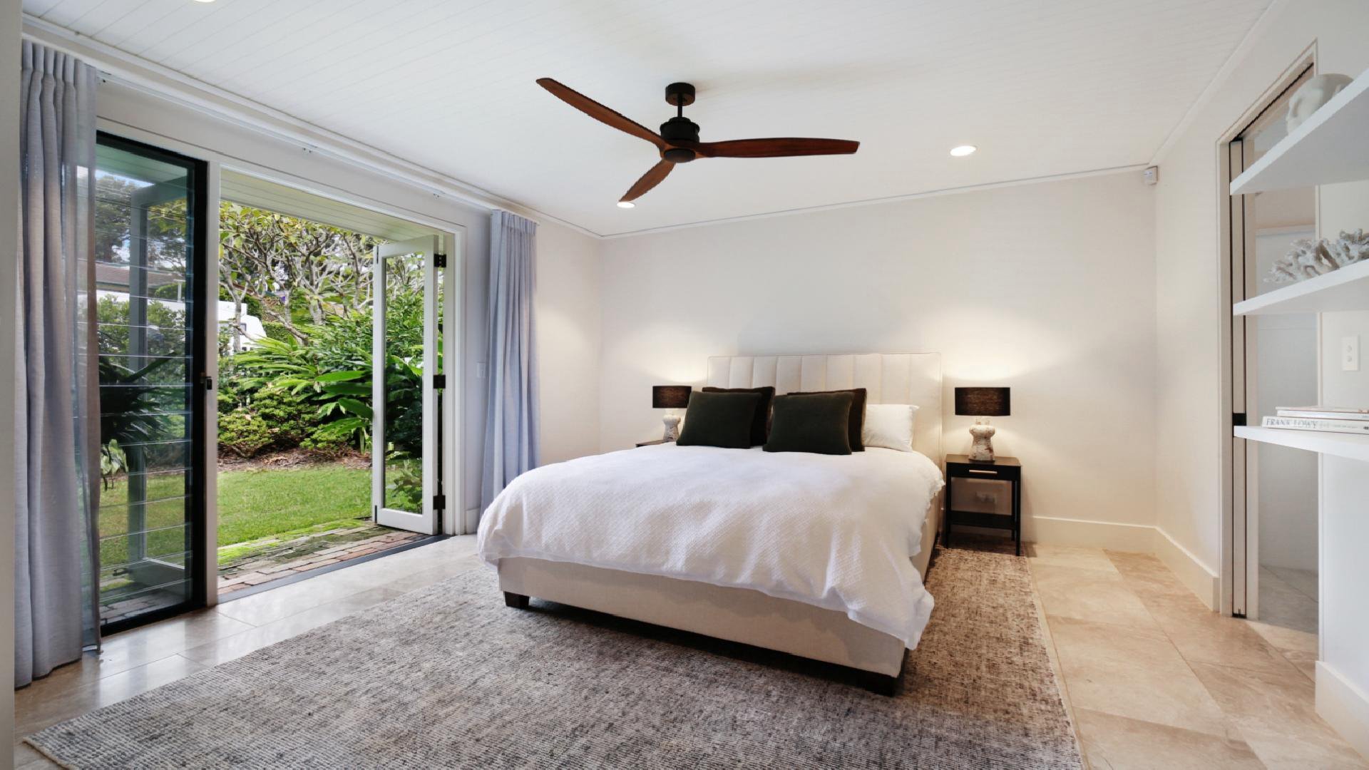 Bedroom 1 features King bed, ensuite bathroom and private balcony. Bedroom 2 features queen bed, ensuite bathroom and garden access, Bedrooms 3, 4 and 5 each feature a double bed.