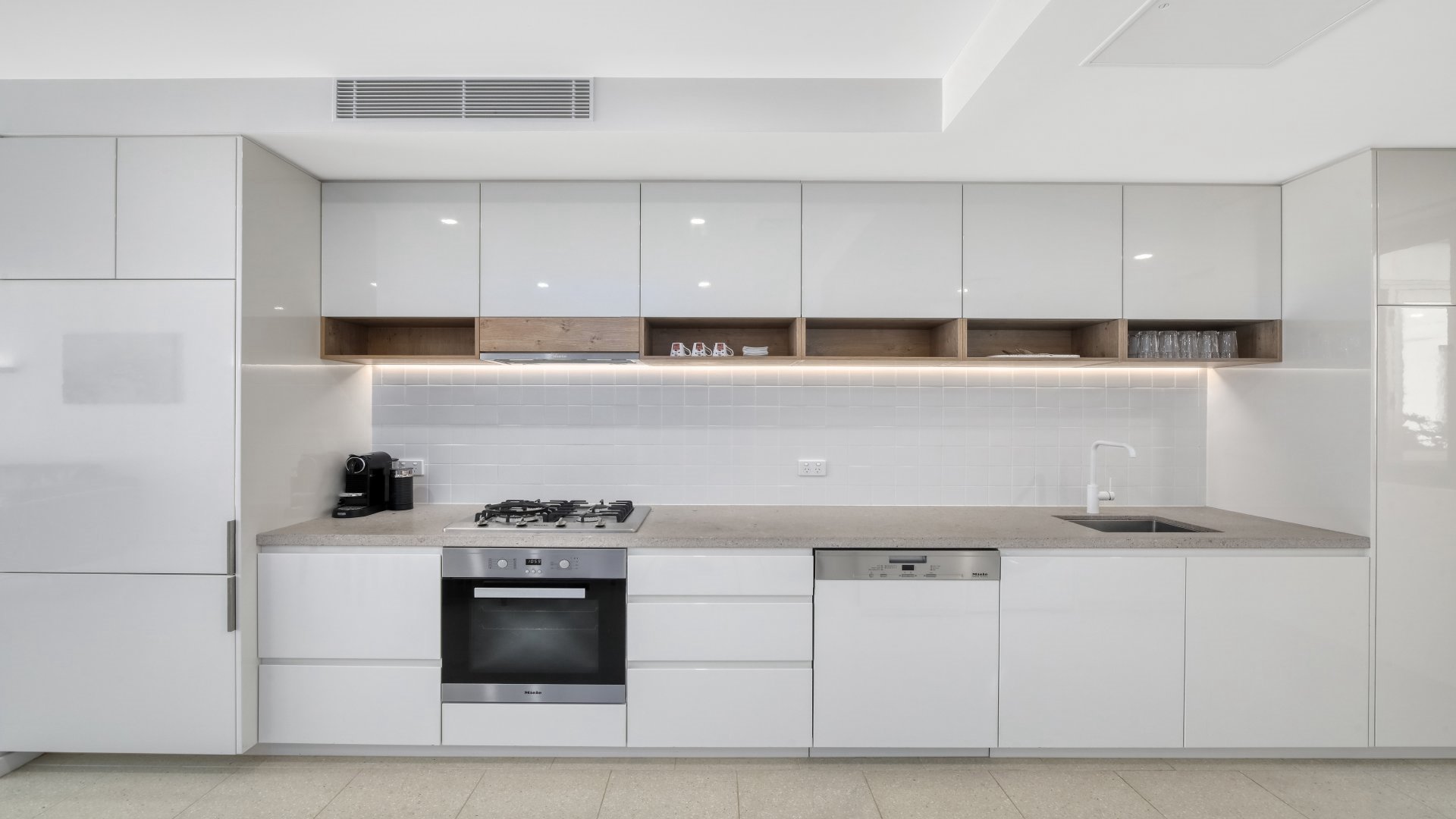 - Designer kitchen with Miele appliances, oven, gas cooktop, dishwasher and coffee machine