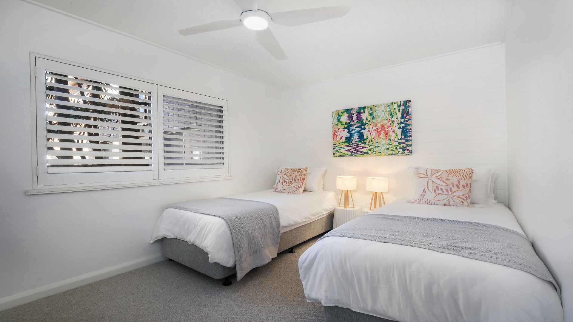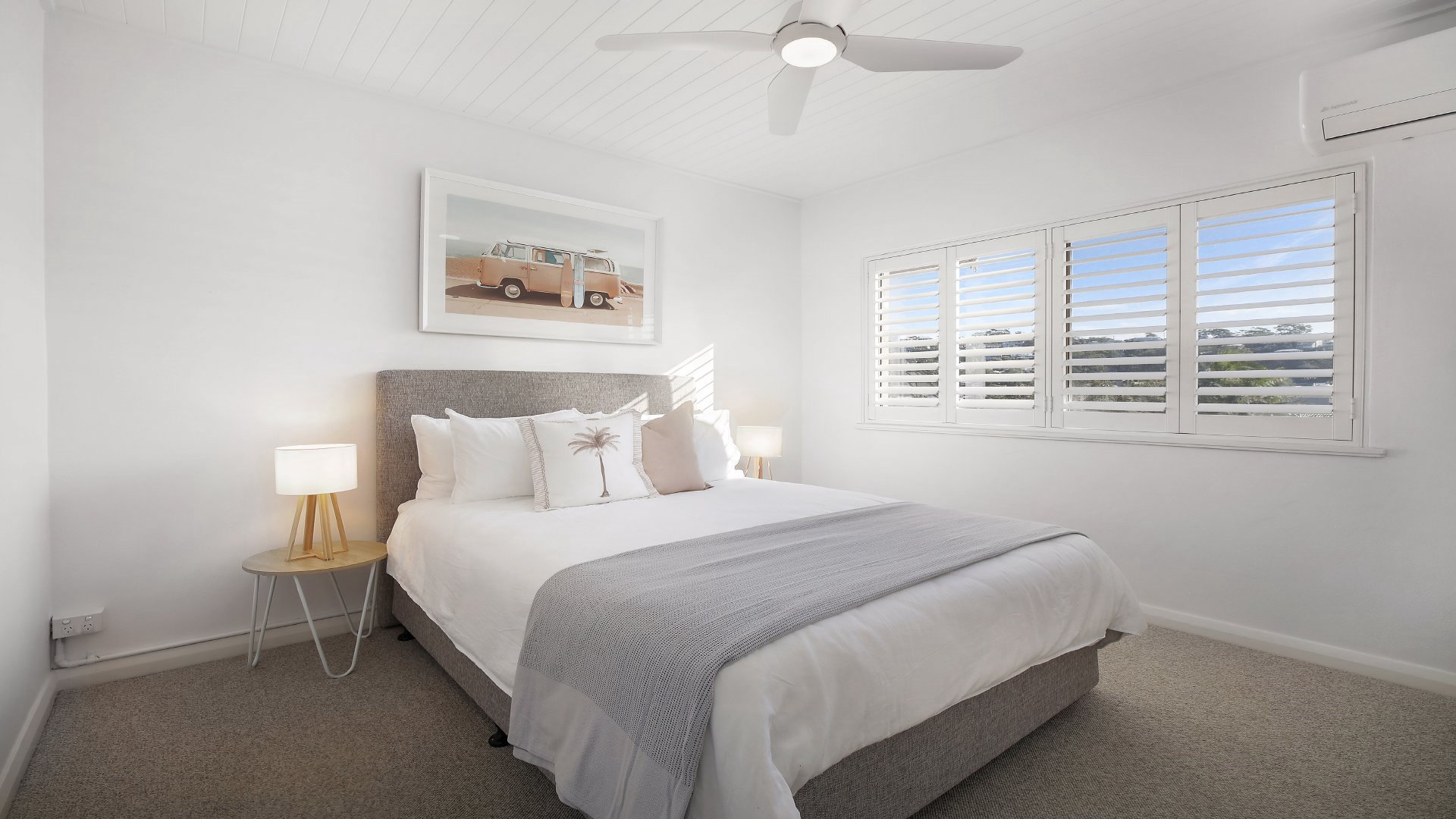 Sun drenched and stylish, 12 at Terrigal is a two bedroom apartment that boasts a stellar location within walking distance to Terrigal Beach, local cafes, restaurants and boutique shopping. Close to everything in Terrigal, this fantastic holiday unit has been tastefully renovated and contains all modern luxuries enjoyed at home. The unit features an open plan kitchen, living and dining space that flows out to the balcony. The master bedroom contains a queen bed, split system aircon and ceiling fan, while bedroom two has two single beds and ceiling fan.