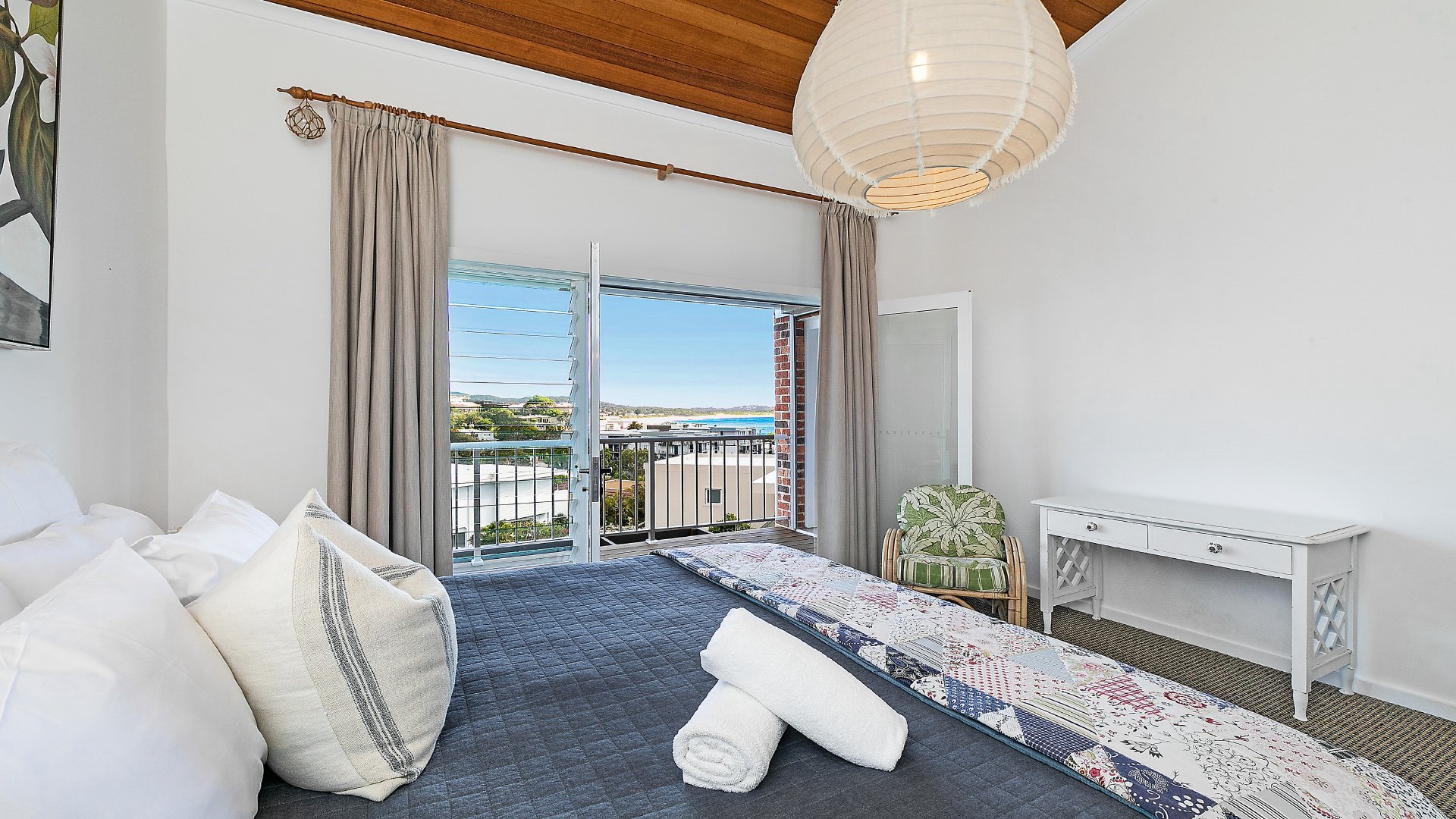 A haven for family groups, "Sei Vue" boasts incredible sweeping views of Terrigal and Wamberal beaches without sacrificing privacy. Just 300 metres to everything, Sei Vue is an easy stroll to Terrigal beach, cafes and stores. Bathed in sunlight, this spectacular residence has been tastefully styled to capture the essence of the quintessential laidback family beach getaway. Positioned to capture the winter sun and summer"s cooling ocean breezes, it offers all luxuries enjoyed at home. On the upstairs level we have the master bedroom with a king bed, ensuite, a balcony and built-in robes. Bedroom 2 has a queen bed. Bedroom 3 (kids room) has a bunk bed and two single beds. On the downstairs level we have bedroom 4 that has two double beds. Total bedding allows for 6 adults with additional bedding for 4 children.