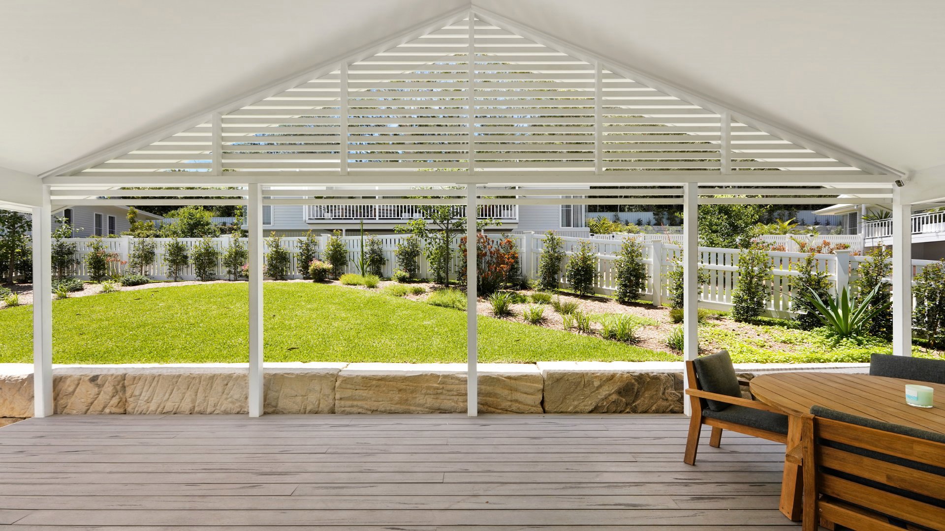 - Kitchen -fully equipped, dishwasher, gas cooking, large kitchen island Entertaining balcony with outdoor setting and outdoor area with yard and table setting Large ensuite with free standing bath, second bathroom and additional powder room
