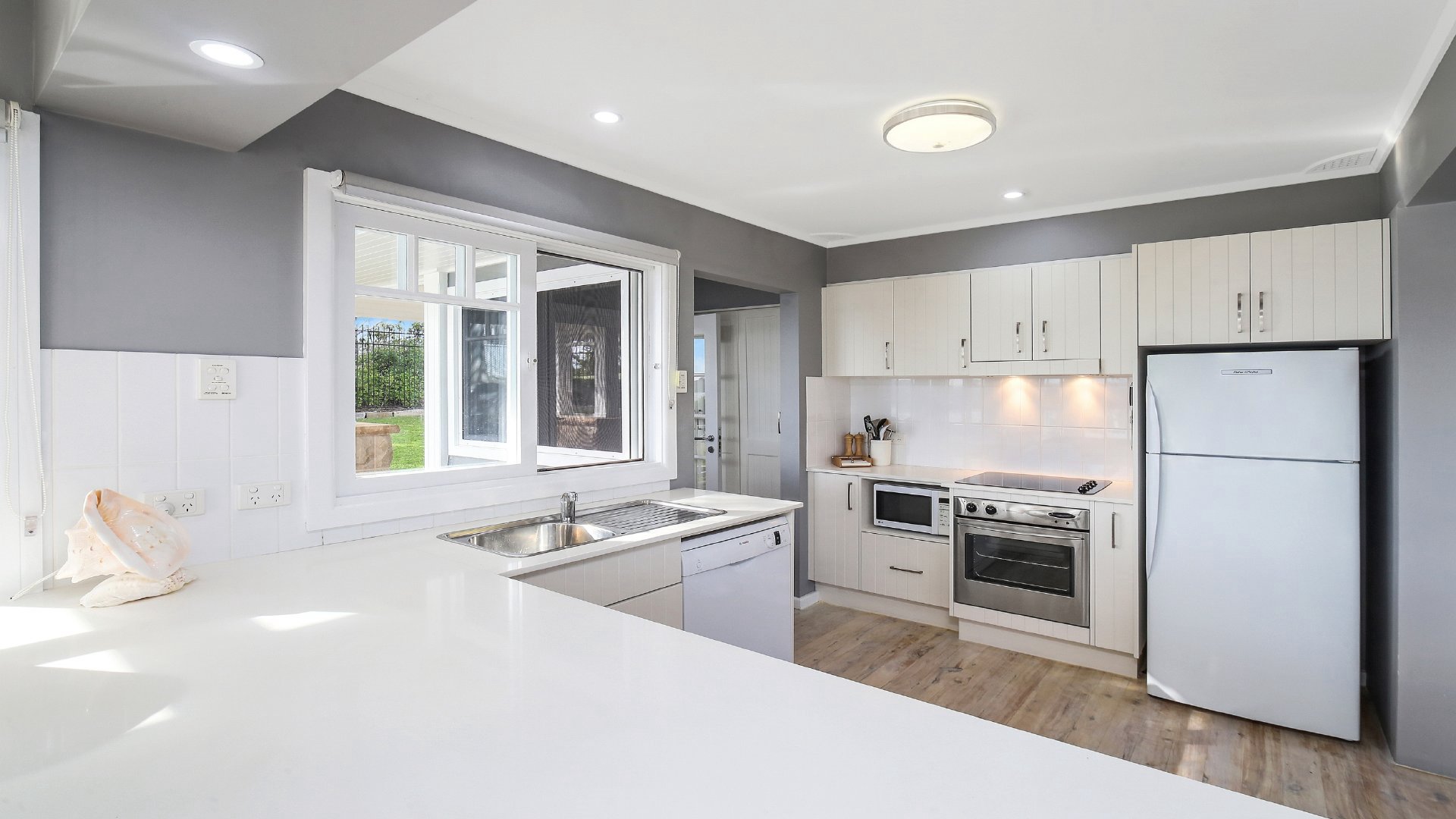 This much loved property has been in the same family for over 60 years and has only recently become available for rental after an extensive renovation. The upstairs dwelling features open plan living that flows out to a large deck. Picture windows let in streams of natural sunlight and perfectly frame the unparalleled view. Upstairs bedroom 1 features a queen bed and ensuite bathroom, whilst bedroom 2 contains a queen bed. Both have air conditioning.