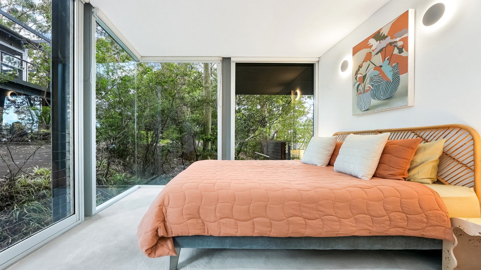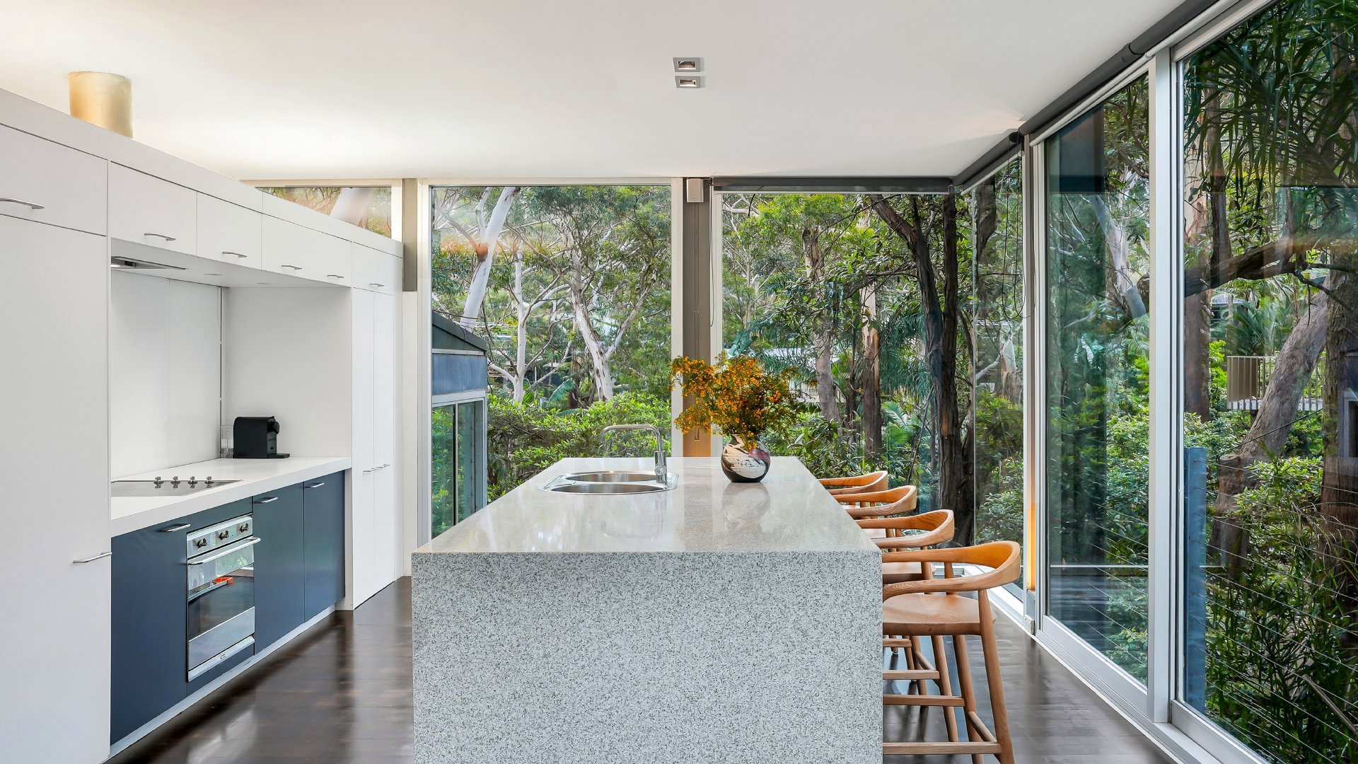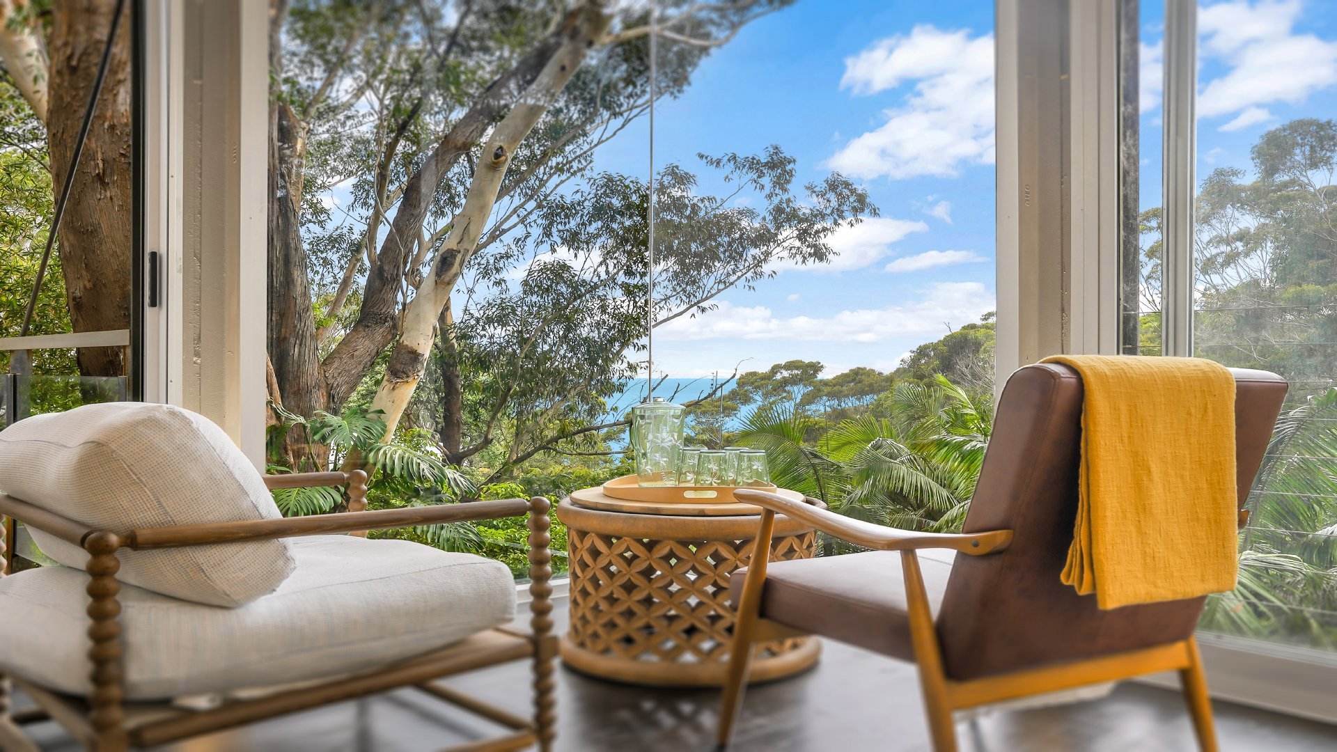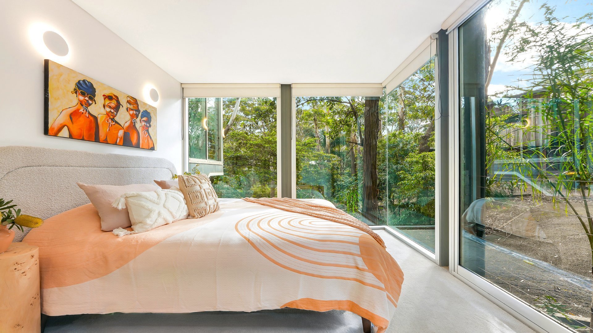 Set high among the treetops, The Glass House is a truly unique breathtaking retreat. Spanning across two levels the home is made of floor to ceiling glass walls on all four sides immersing you in sweeping bushland and ocean views. Located just 300 metres from Macmasters Beach.