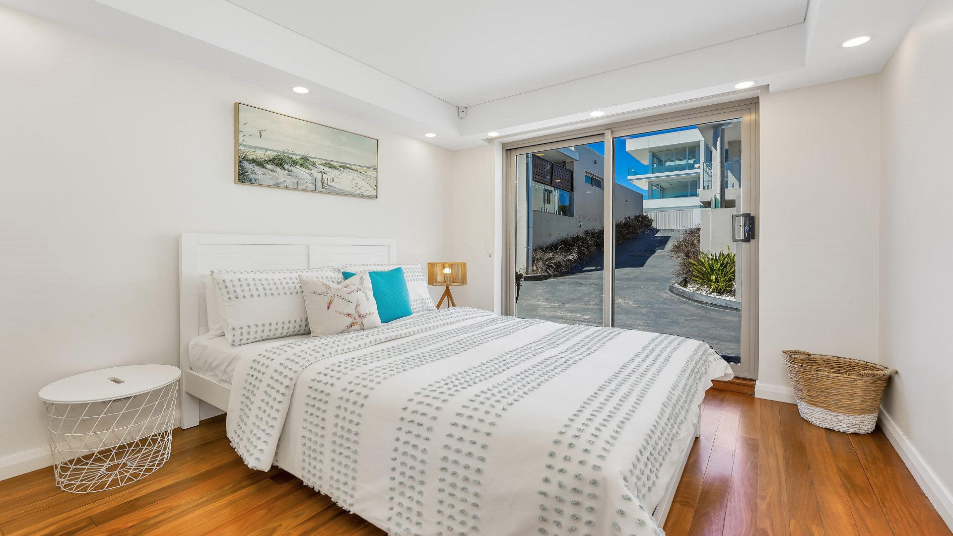 Split across multiple levels, Infinity Five features light filled open plan living, kitchen and dining on the upper floor which opens out to the balcony. Down a couple steps is a bedroom with queen bed and built in wardrobe along with a main bathroom.