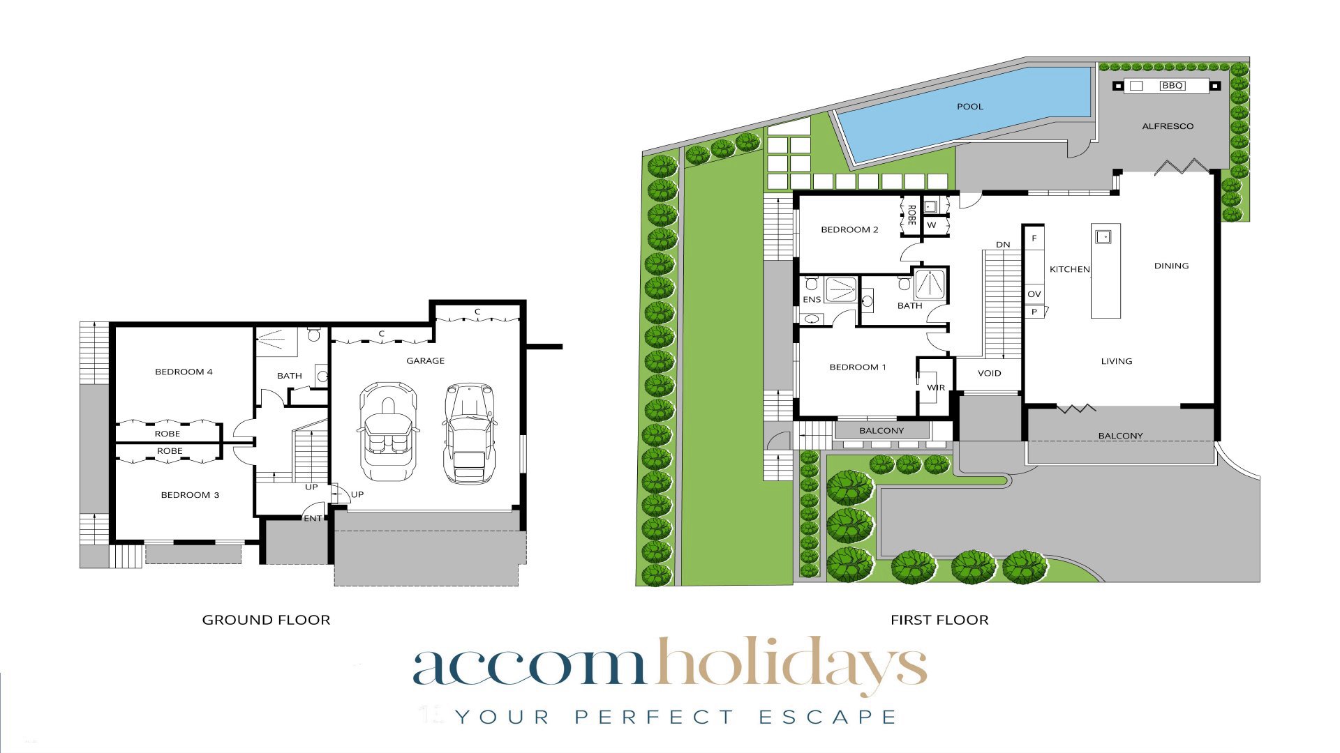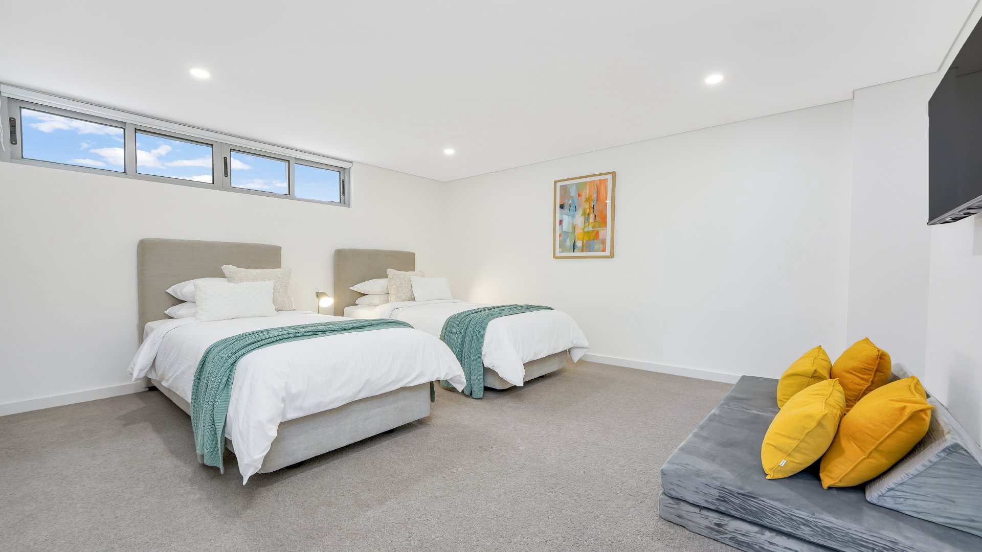 Set in a secure complex of three and spread across multiple levels, Amani by the Sea has been thoughtfully designed to make every stay easy and enjoyable. Upstairs is the open plan kitchen living and dining that flows out to the BBQ and pool area, on this level you will find the master bedroom with king bed, ensuite and walk in robe, bedroom two with queen bed and built in robe, the master bathroom and internal laundry. Downstairs is bedroom three with two king singles, bedroom four with queen bed and second bathroom.