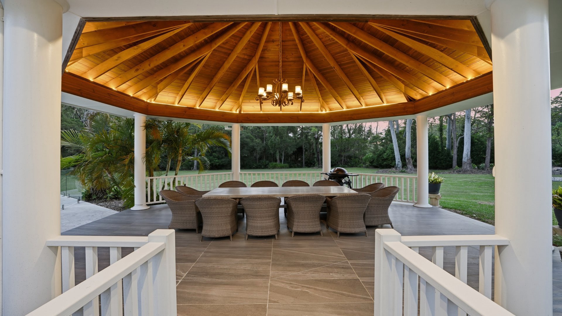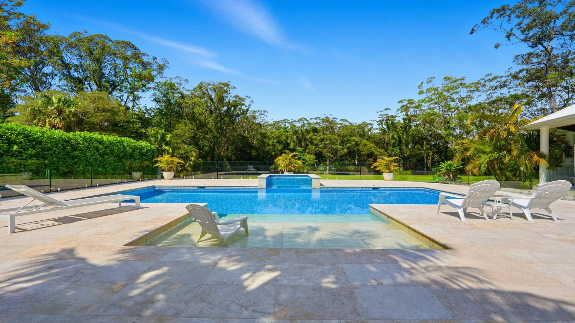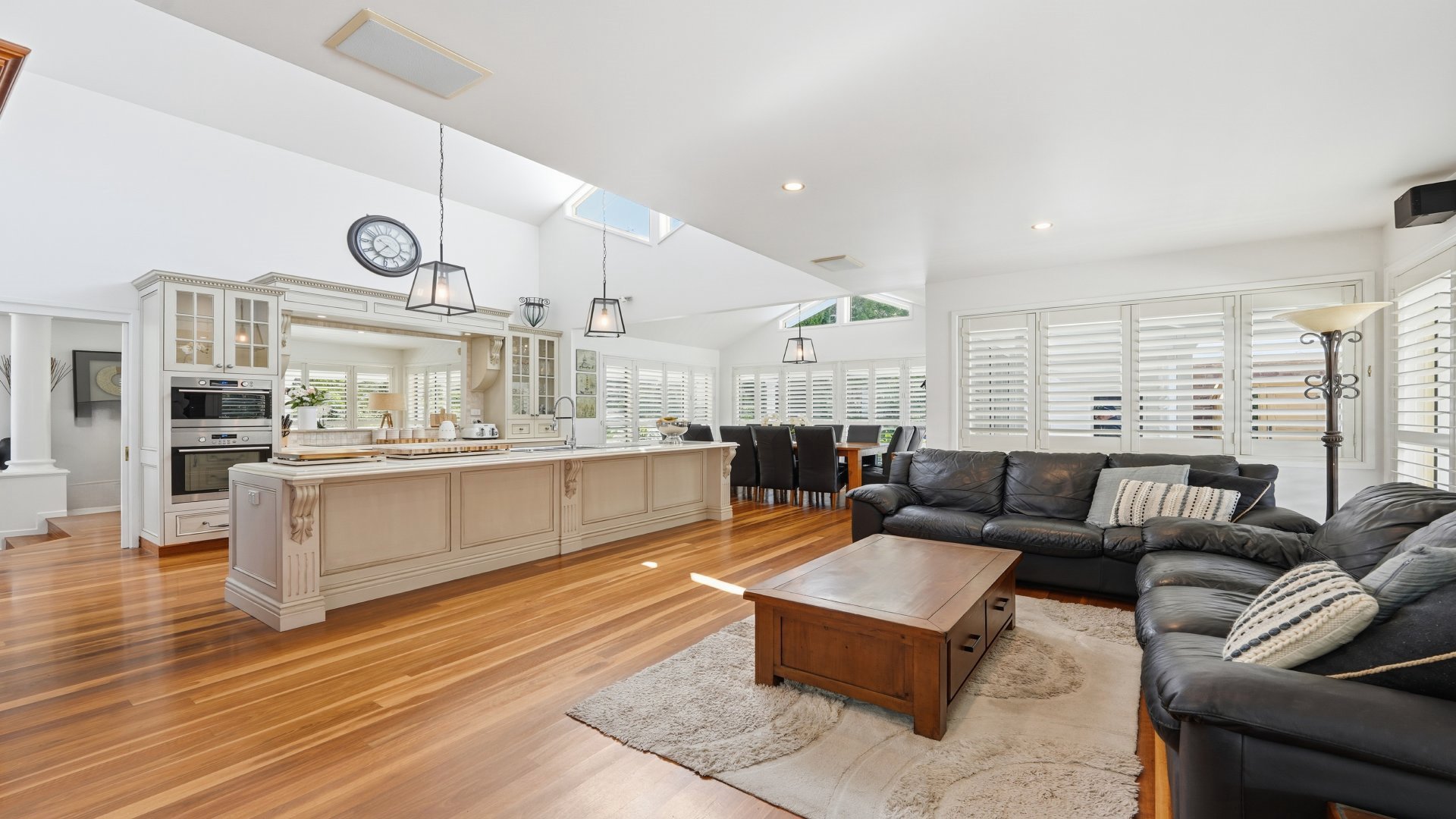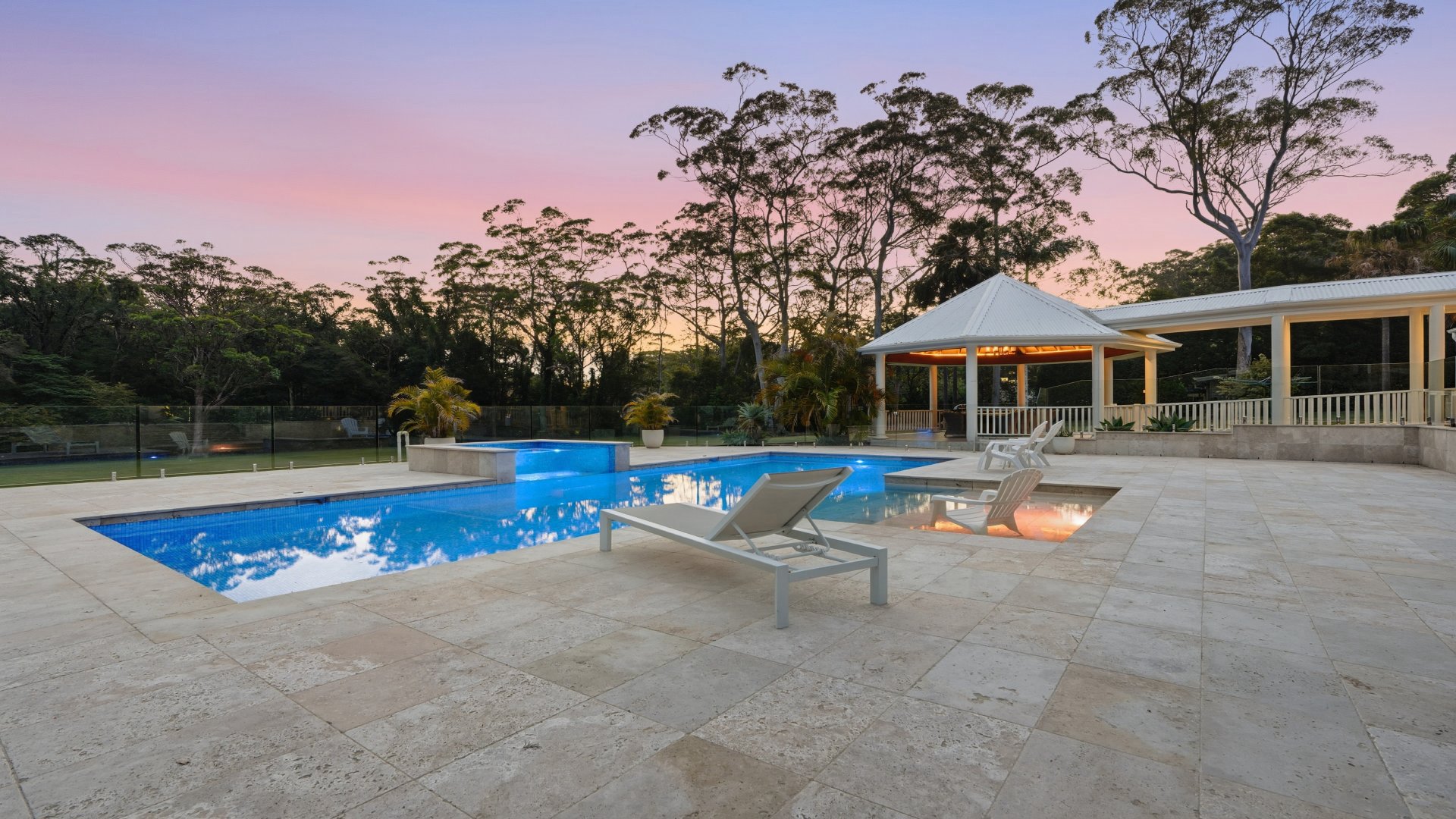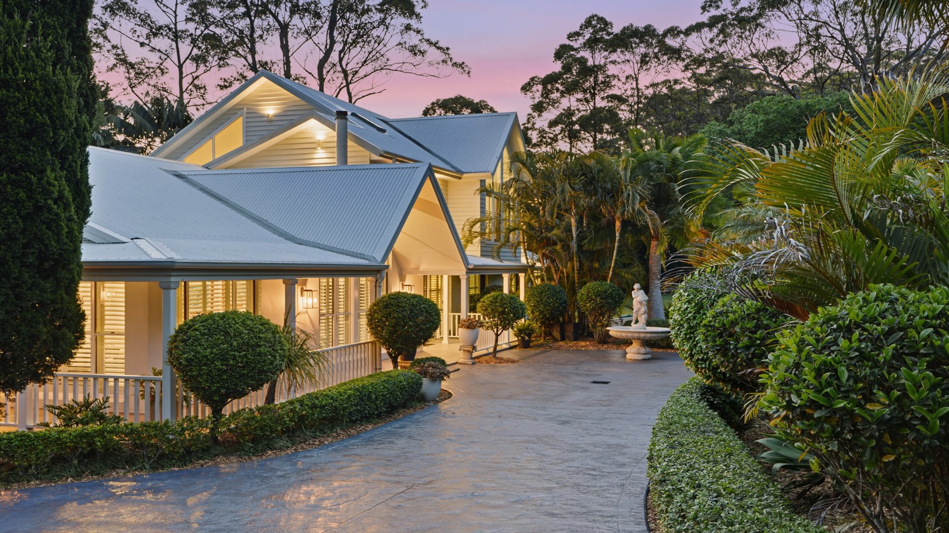 Wake up to the sound of bellbirds, spot wallabies graze nearby and watch the colourful kookaburras, cockatoos and rosellas from your wide wraparound verandah. Inside, the home features six bedrooms, four bathrooms, and generous open-plan living areas with cathedral ceilings and skylights that fill the space with natural light. The French Provincial kitchen, indoor bar and multiple entertaining zones make hosting effortless, while a cosy fireplace and air conditioning provide comfort year-round.