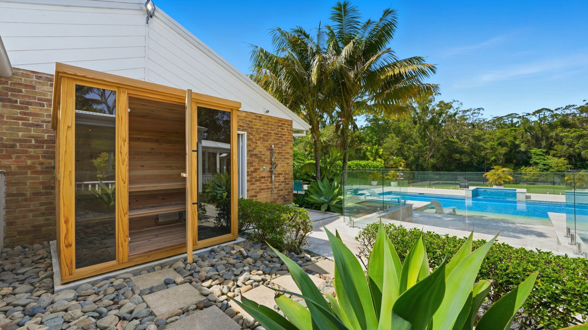 Outdoors, guests can unwind by the large pool, soak in the heated spa or enjoy the four person sauna. The impressive turret gazebo is perfect for shared meals or group gatherings, and the tranquil setting is ideal for yoga, pilates or wellness retreats. Ocean Palms comfortably sleeps up to 16 guests and includes a dedicated office space, billiard table and plenty of onsite parking. Additional experiences such as private pilates sessions and catering from Aromas On Sea Café can also be arranged directly with our partners.
