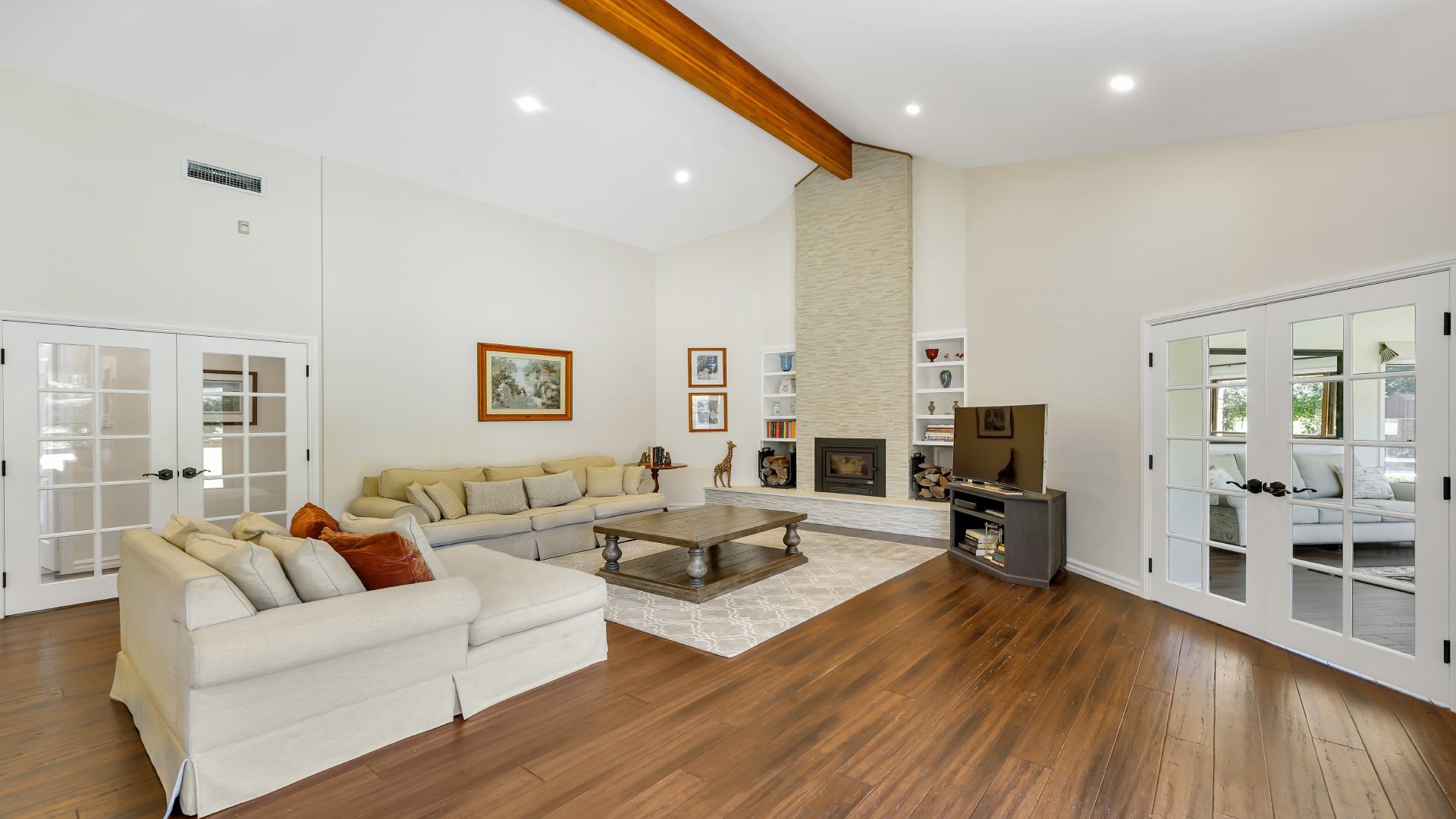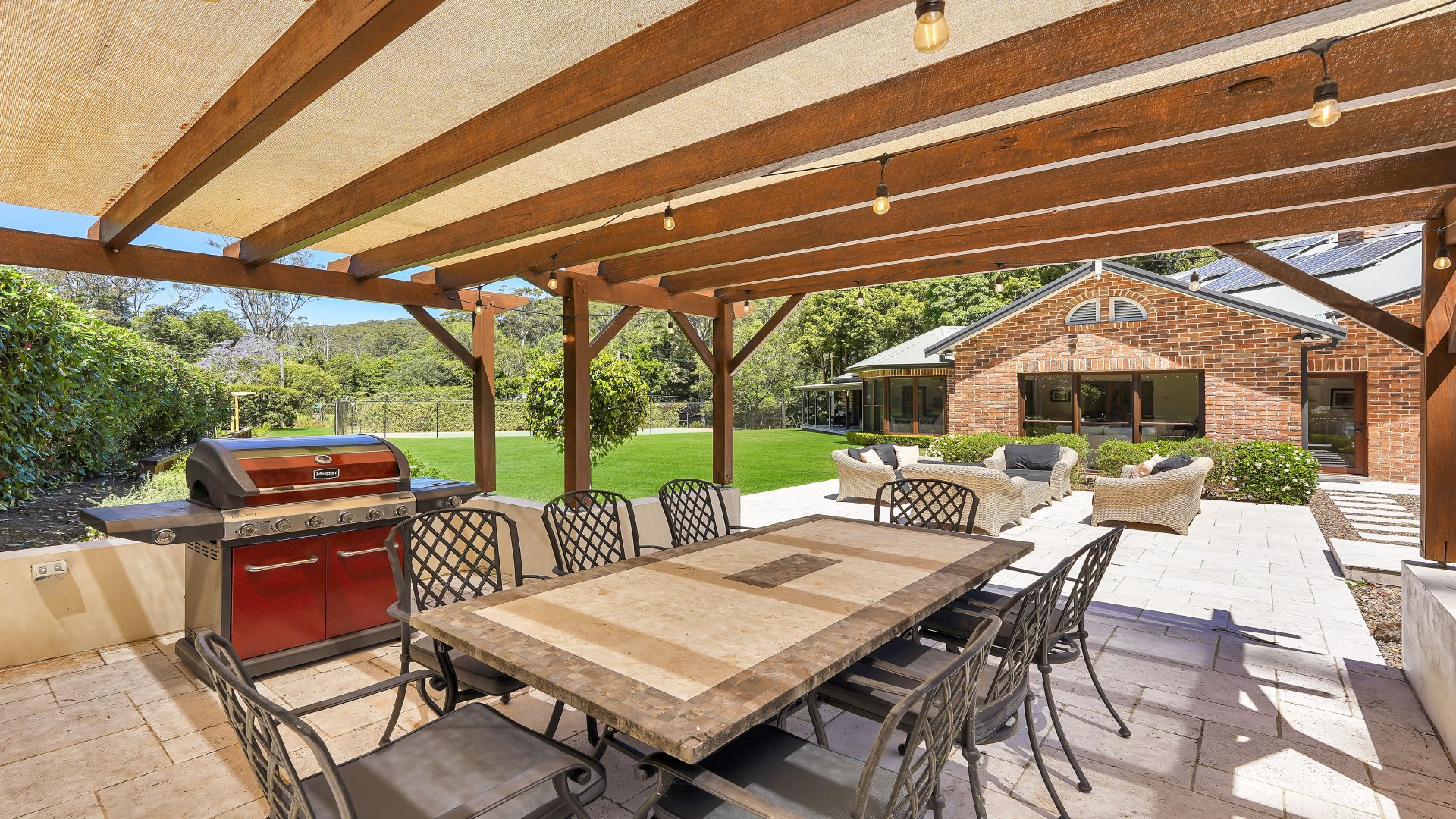 - Covered outdoor dining area with BBQ and outdoor lounge setting